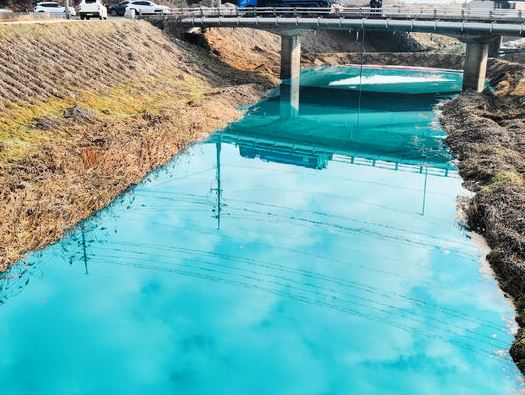 평택 인근에 하천 일부 구간이 파랗게 변해서 주민들 걱정이 이만저만이 아닙니다.