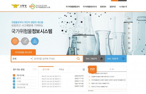 한국소방산업기술원에서 운영하는 국가위험물정보시스템 입니다.