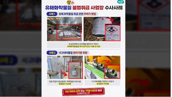 A 업체는 2020년 6월~2023년 3월 금속제품의 표면처리작업 시 유독물질로 지정된 무수크롬산, 수산화나트륨 등을 관할 관청의 허가를 받지 않고 사용하다가 적발됐습니다.