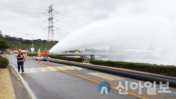 대용량포 방사시스템은 2018년 10월 고양저유소 원유탱크 화재를 계기로 지난해 12월 울산석유화학단지에 국내 최초로 도입됐다.
