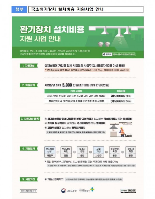 취급사업장에서 국소배기장치를 설치·개선하는 경우 최대 5천만원
