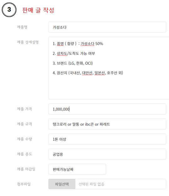 ex) 품명 ( 함량 ) : 가성소다 50%